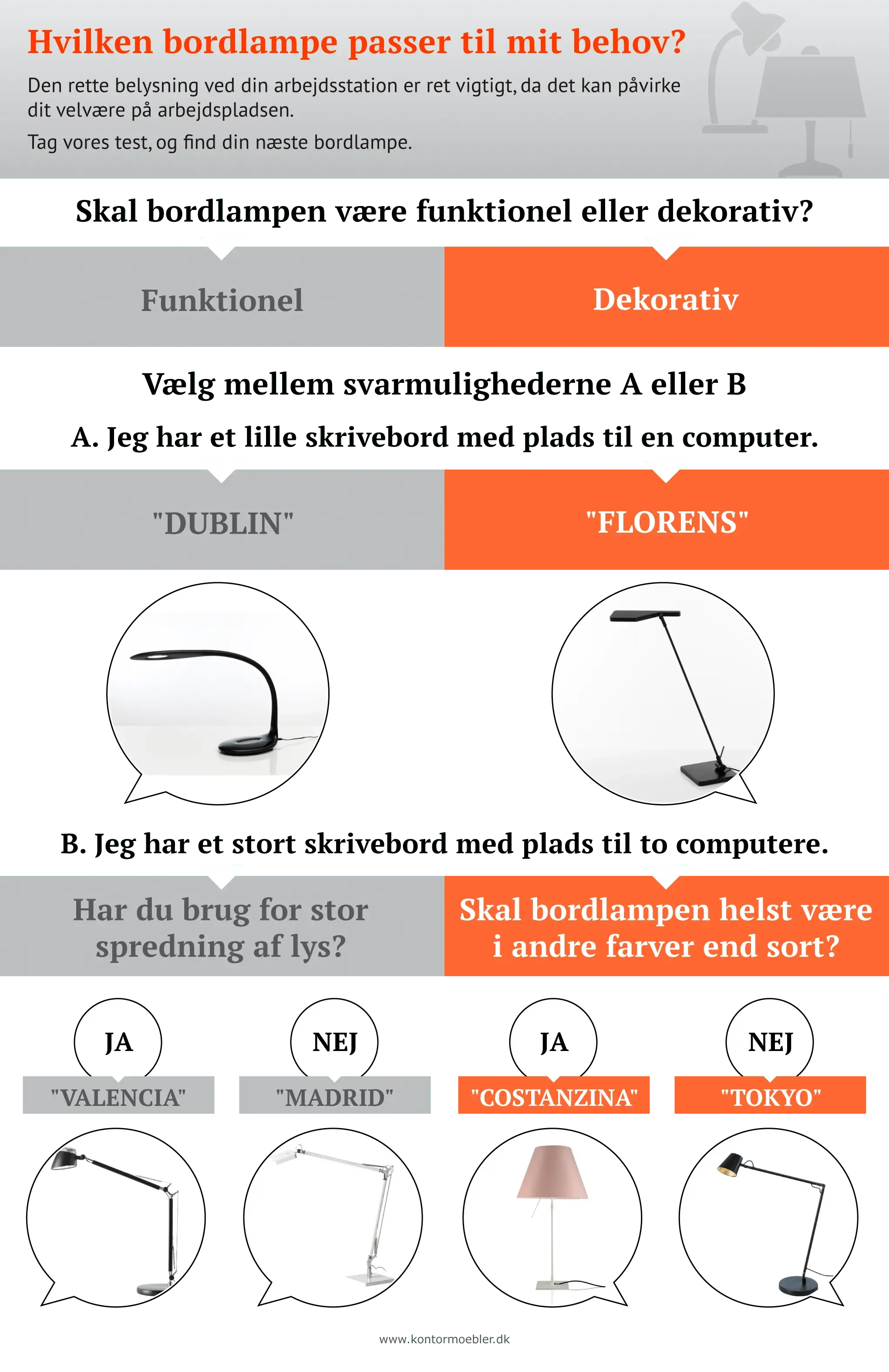 Du kan med fordel tage vores bordlampe test for at finde ud af, hvilken bordlampe der passer bedst til dig. Eller bruge det som en vejledende guide til, hvilke typer bordlamper der muligvis passer bedst til dig.