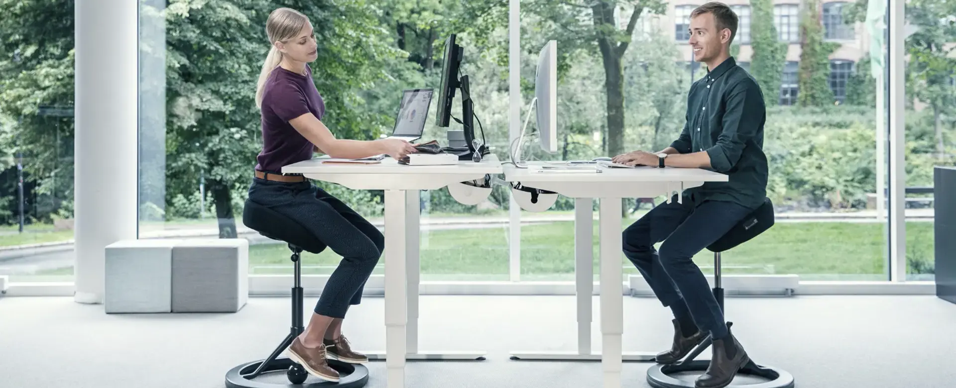 Har du et hæve sænkebord, som du ikke får brugt nok i løbet ad dagen? Eller vil du godt gøre noget ekstra godt for din krop for at forebygge lidelser fra stillesiddende arbejde? Så kan du gå skridtet videre og overveje en sadelstol som Backapp. Det er en kontorstol til dårlig ryg. Stolen virker ved, at man sidder ud over en sadel. Kontorstolen strækker ryggen ud og forbedrer din holdning, hvor Backapp stolen aktiverer dine rygmuskler og coremusklerne. Derudover har stolen en bold i bunden, så du kan justere, hvor meget du vil træne den pågældende dag. Bolden under Backapp er med til at aktivere en rækker muskelgrupper og træner din krop i løbet af din arbejdsdag.