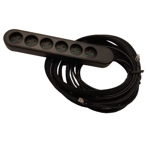 6-stikdåse med jordforbindelse 5 m ledning + 7 m netværkskabel Monteres i kabelbakken/ under skrivebord