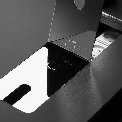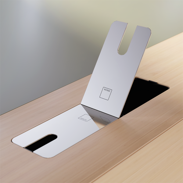 Krom eller sortlakeret stål Skal bestilles sammen med bordet Passer til alle Dencon-borde