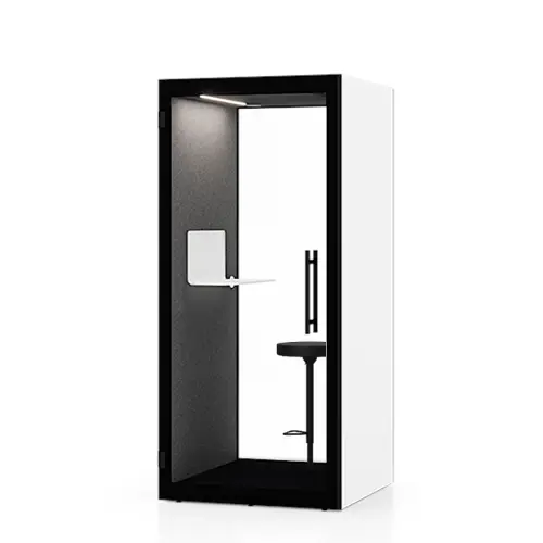 Lyddæmpende møde og telefonboks, for øget produktivitet Led-lys, lydløs ventilation og strøm + nem montering Telefonboksen kan leases