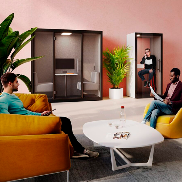 Mødeboks for 2 personer - brainstorm for 4 personer Led-lys, lydløs ventilation og strøm Nem montering - 2 personer + 1 stk værktøj og 1 time
