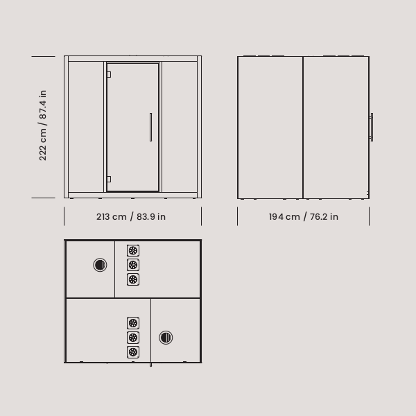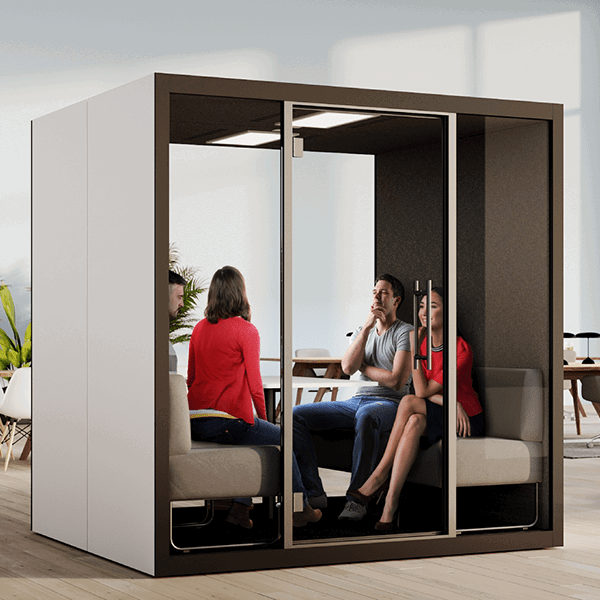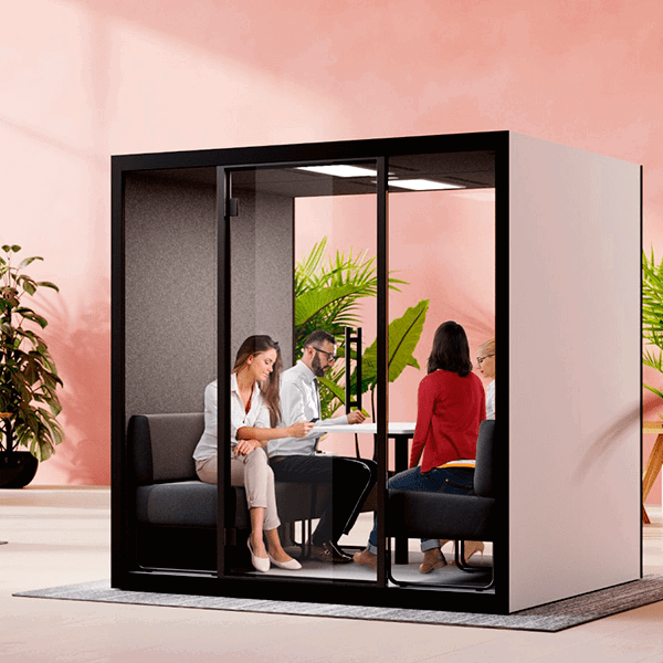 Mødeboks til 4 personer Led-lys, lydløs ventilation og strøm Nem montering - 2 personer + 1 stk værktøj og 2 time