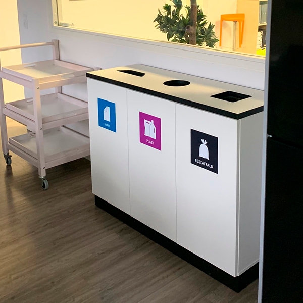 B120 x D40 x H90 cm Nem sortering af affald til genbrug Tydelig visning med sorteringsmærker