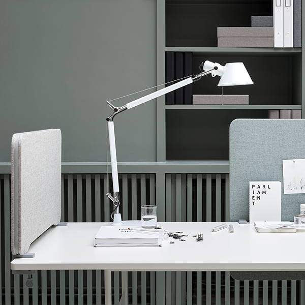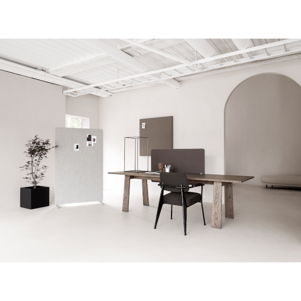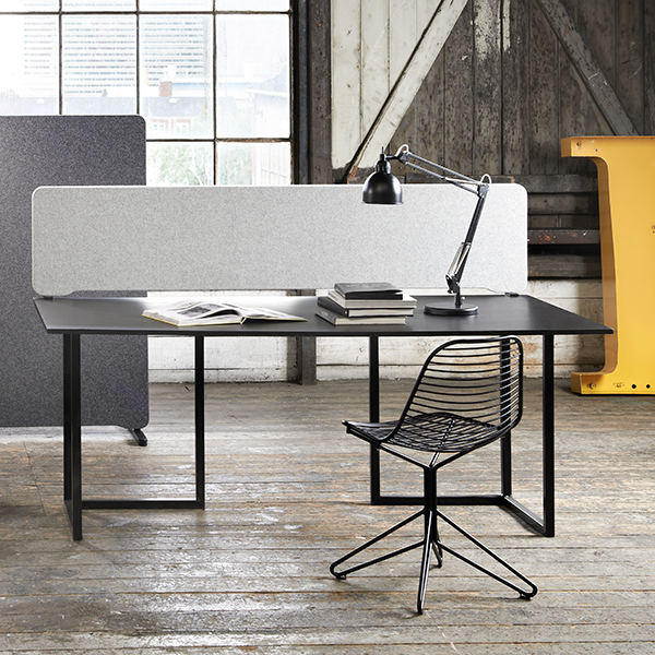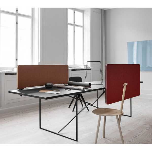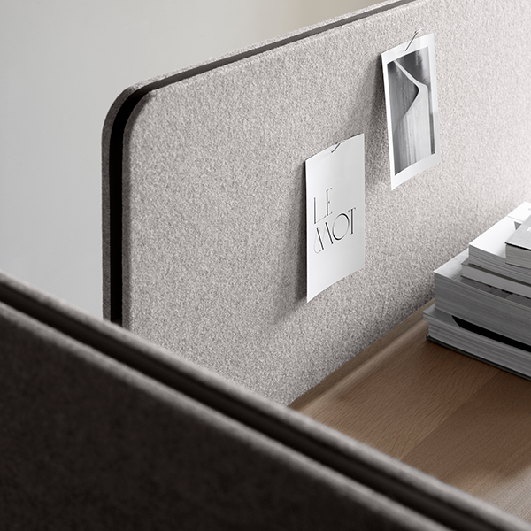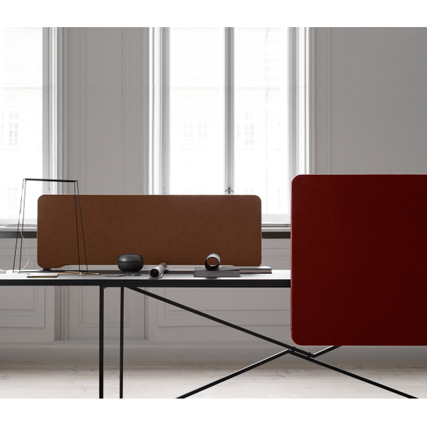 Afskærmning er ofte en nødvendighed på nutidens arbejdspladser, hvor storrumskontorer og mange arbejdsstationer er en del af jeres kontormiljø. Bordskærme er en smart og enkel måde at skabe små rum i rummet og give du og dine kollegaer den arbejdsro, som I har behov for. Edge bordskærm fra danske Lintex er lydabsorberende og fremragende til at dæmpe støj på kontoret. Samtidig giver den dine medarbejdere privatliv ved at fungere som afskærmning på skrivebordet En fordel ved at anvende bordskærme er fx hvis du har den monteret på dit hæve sænke bord, da afskærmningen følger bordets højde og din arbejdsstilling. Derudover fylder bordskærmen ikke meget i kontorlandskabet, men giver plads og ro til dig og dine kollegaer. Derudover kan skærmen også anvendes som opslagstavle, hvor du kan hænge noter, papir og lignende op med knappenåle i løbet af dagen. En pladsbesparende og praktisk løsning til kontorafskærmning Bordskærmen er med beslag, så den kan sættes fast på bordet, passer til bordplader op til 34 mm. Det er muligt at vælge bordskærmen i mange forskellige farver og stoftyper, så I kan tilpasse bordskærmen til jeres unikke kontormiljø. Bordskærmen er fremstillet med lydabsorberende stenuld. Den lydabsorberende kvalitet kan have en afgørende betydning for hvordan lydniveauet opleves igennem en arbejdsdag. Sidder man tæt med andre kollegaer på et kontor er bordskærmen fornuftigt at afprøve i forbindelse med støjreducering. Bordskærme tager primært støj fra tastatur, mus og andre kontorartikler der anvendes i dagligdagen. Vi anbefaler at man også anvender gulvskærme eller væghængt lydisolering, hvis I har store problemer med støj. Produktmål: Højde: 40 cm Bredde: 80/100/120/140/160/180/200 cm Dybde: 4 cm Prisen er inkl. et beslagsæt i enten sort eller grå. Design: Christian Halleröd Vejledende leveringstid: 3 uger Sort Fiji: 3 dage (max 8 stk.)