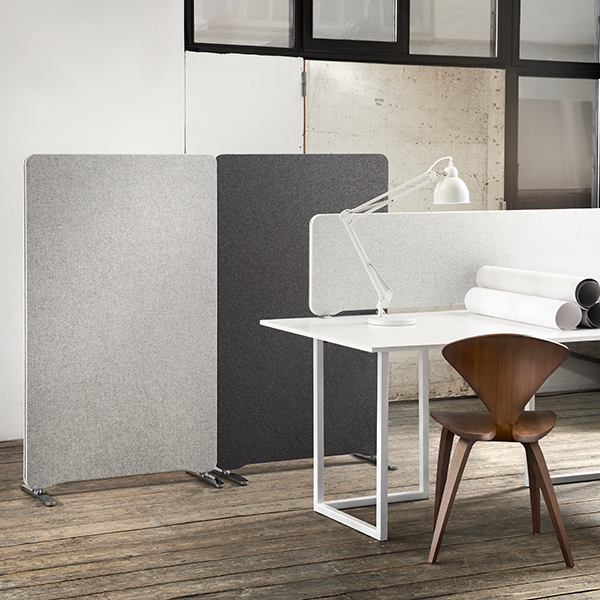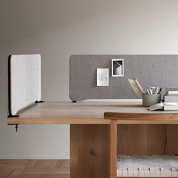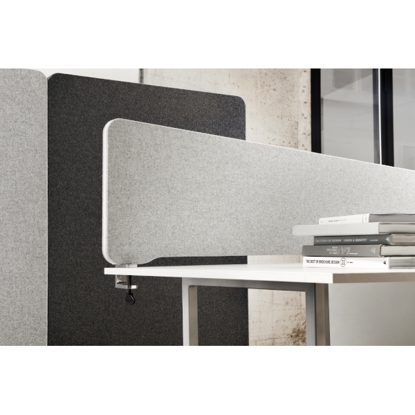 Til bordplader op til 34 mm Dæmper støj og giver privatliv Leveres inkl. beslagsæt