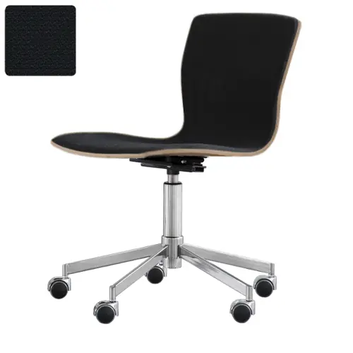 Butterfly Swivel konferencestol med flexvip, er en utrolig komfortabel stol. Den smukke og elegante stol, kan virke både som hjemme kontorstol, til chefkontoret, eller som en tidsløs mødestol. Ligegyldigt hvad, får du et fantastisk pænt design. Butterfly Swivel er den eksklusive stol fra stoleserien Butterfly Swivel, designet af Niels Gammelgaard for Magnus Olesen. Som hele Butterfly Swivel serien, har Butterfly Swivel også mange kombinationsmuligheder. Sædet kan vælges med forsidepolstring eller fuldpolstring, med eller uden kanalsyning. Der kan vælges mellem mange forskellige stoftyper og farver. Her viser vi nogle klassiske polstringstyper, Cura i 100% polyester, Fame stoffet består af 95% uld og 5% polyamid, er en meget blød og silkeagtig uld. Sydney læder og Hero læder. Hero læder er en alsidig læder, der er velegnet til kanalsyning. Tykkelse 0,9 - 1,1 mm, med samme egenskaber som Ultra læder. Kontakt os for yderligere inmormation. Stellet kan vælges i 3 varianter. Hjul med bløde baner, flexvip og højdejustering Hårde glidere, flexvip og returdrej Hårde glidere, flexvip og højdejustering Produktmål: Bredde 64 cm. Dybde 55 cm. Højde 64-80 cm. Sædehøjde 44-58 cm. Vejledende leveringstid: 6 uger