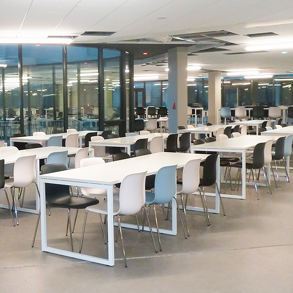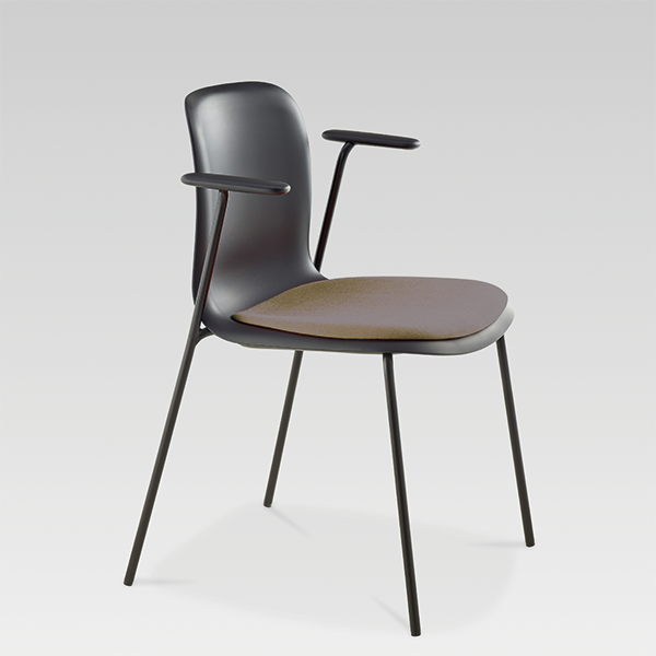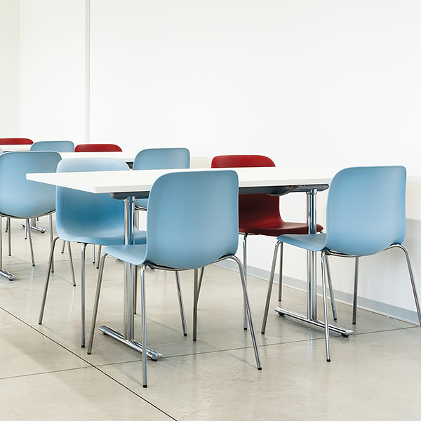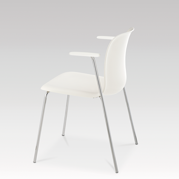 En raffineret og robust kantinestol til fx kantine Fås med og uden sædepolstring - og i flere stelfarver I kromstel kan stolene stables og kobles sammen