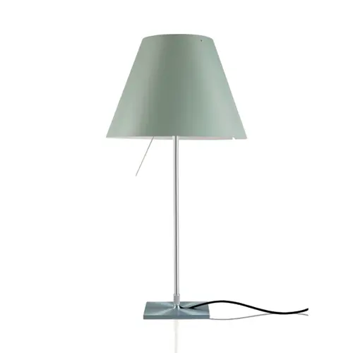 Costanzina bordlampen er søsteren til Costanza og er med sin højde på 51 centimeter, hvilket er en del mindre. Lampen er fremstillet med krop i aluminium og skærm i vaskbar plastfolie, og den er ideel som arbejdslampe, sengelampe, læselampe eller til vinduet. Costanzina fås med 11 forskellige farver skærm og enten 14x14 centimeter aluminiumsfod eller bordmontering, hvor lampen fastgøres gennem en maks 6 centimeter tyk bordplade. Medfølgende lyskilde er inkluderet i prisen. Bemærk at prisen kan ændre sig afhængig af det valgte. Bordfod: 14x14 cm fod i aluminium. Kan flyttes. Bord-montering: Til fast montering på særlige hæve sænke borde og skriveborde. Lampen monteres gennem bordet (max 6 cm tyk plade) og sættes i spænd på bordets underside. Ledningen kan føres over eller under bordpladen. Design: Paolo Rizzatto. Vejledende leveringstid: 2-3 uger