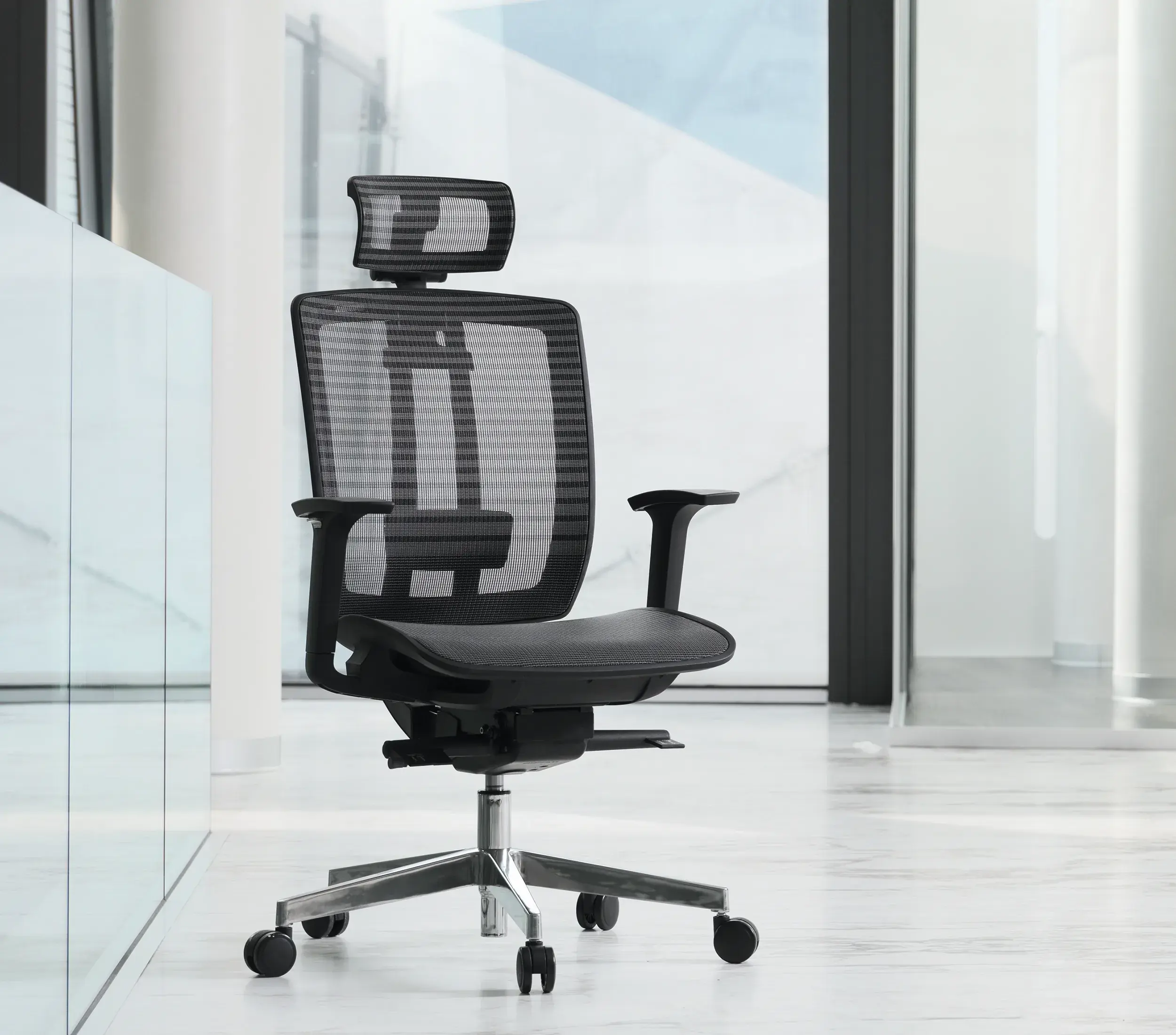Let kontorstol med ryg i mesh Tilpasser sig automatisk brugeren Med og uden armlæn