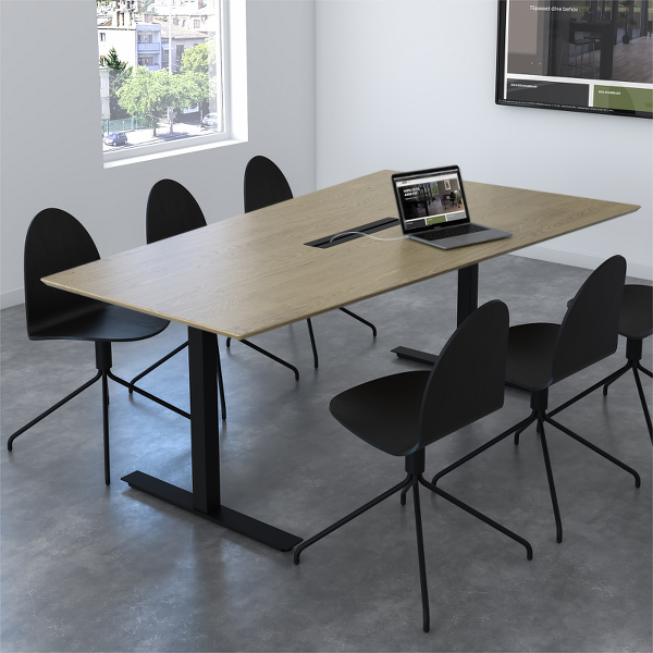 Perfekt til videomøder Dobbelt kabelbakke i samme farve som bordpladen Fast stel med rund eller kvadratisk søjle
