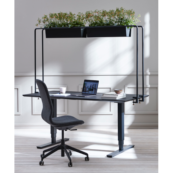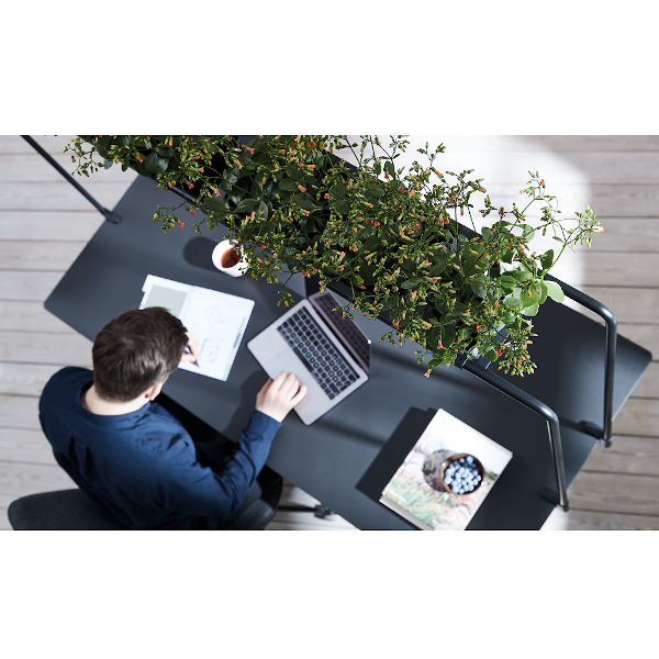 Sættes nemt fast på skrivebordet Aftagelige plastindsatser til omplantning Grønt og inspirende arbejdsmiljø