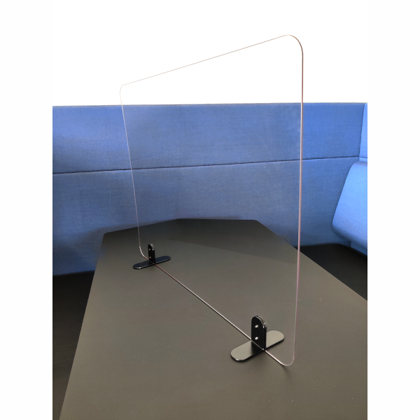 Trygt tilbage på arbejdspladsen Smitteafskærmning med fuld øjenkontakt Fleksibel og flytbar - sideafskærmning kan tilkøbes