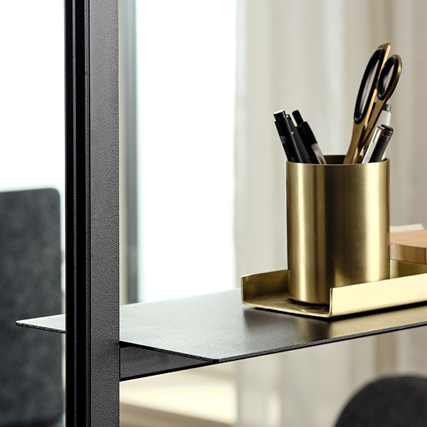 Fritstående rumdeler Flere anvendelsesmuligheder - skab en unik indretning Afskærmning, lydafskærmning og reolfunktion i ét møbel