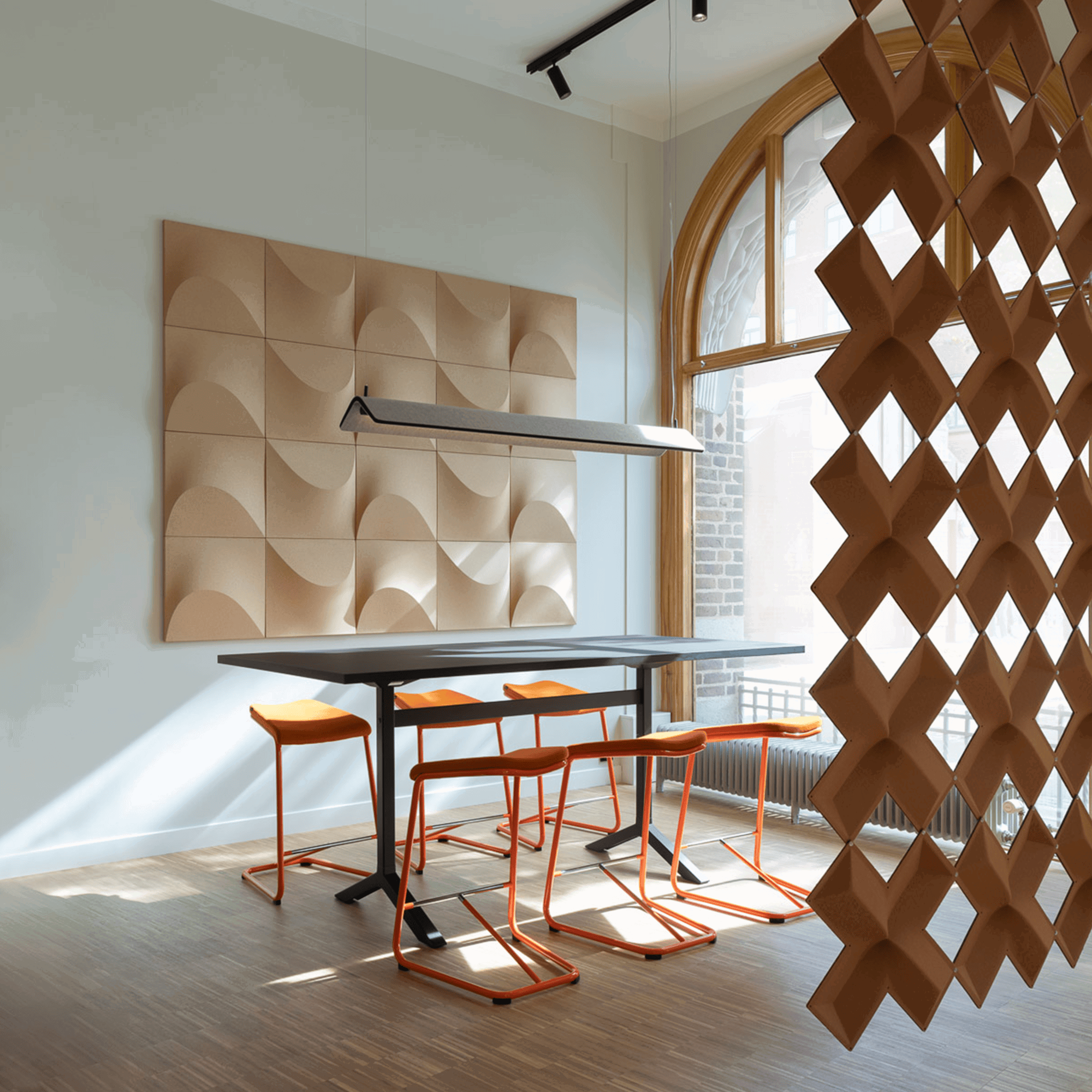 Vika er ikke bare en lampe, det er en stemningsskaber. I samarbejde med designeren Khodi Feiz har Abstracta skabt en lydabsorberende pendel, der forener funktion og æstetik på en ny måde. Med sin bløde form og dæmpende egenskaber skaber Vika en rolig atmosfære, både visuelt og akustisk. Lampen er designet til at give behageligt lys over arbejdsstationer og mødeborde, samtidig med at den effektivt reducerer både lave og høje frekvenser. Den består af en lydabsorberende kerne, delvist fremstillet af genanvendte PET-flasker, og er beklædt med Texfel-stof, som fås i flere farver. Lysets karakter afhænger af farven – lyse nuancer giver et klarere lys, mens mørkere toner skaber en mere dæmpet belysning. Vika hænger elegant fra loftet og kan nemt justeres i højden med de medfølgende wirer. Den karakteristiske vingeform er både enkel og genial – den bidrager til et behageligt lydmiljø og spreder et blødt, atmosfærisk lys. Mål: 150 x 15 x 28 cm