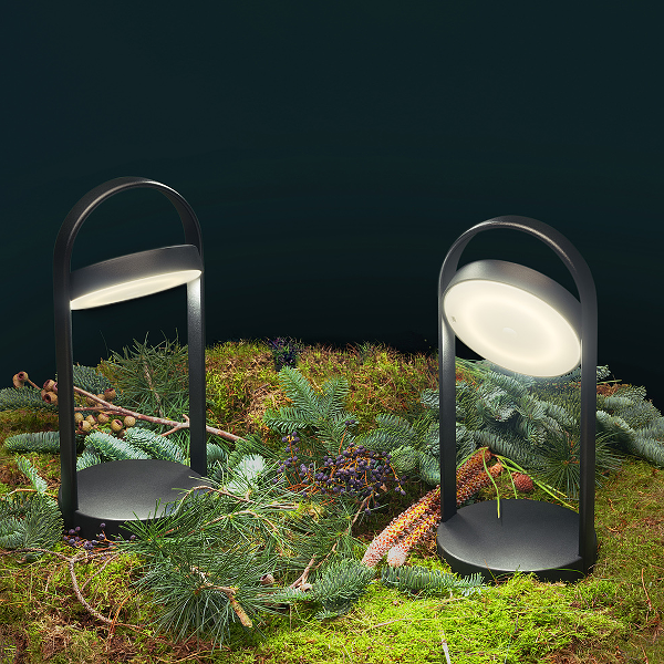 Trådløs bordlampe med håndtag Både til inden- og udendørs brug Hovedet kan rotere 360°