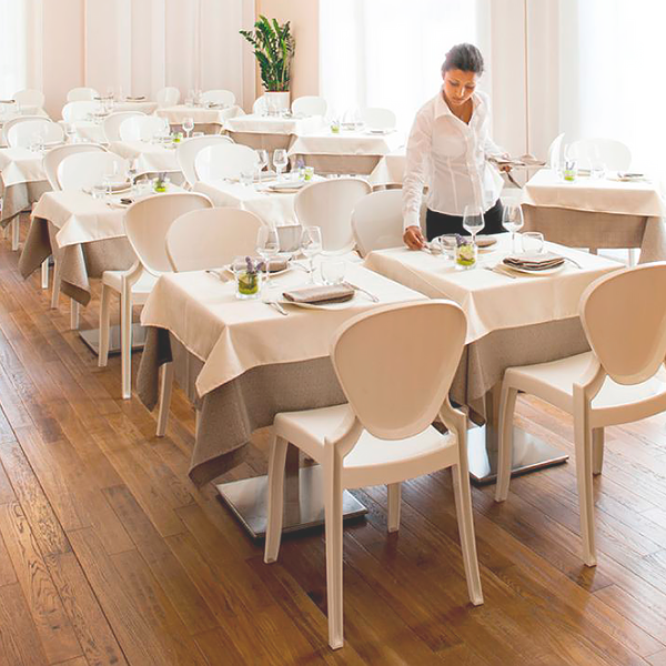 Queen stol Queen stolen fra den Italienske møbelproducent Pedrali er intet mindre end en designmæssig genistreg. Designet peger tilbage mod den romantiske stil, men fortolkningen i det moderne polycarbonat, har givet en smuk stol til restaurant, hotel og kantine. Denne gennemsigtige stol blæser næsten, en designmæssigt omkuld. Den kan kombineres med både moderne og klassisk artikektur, samtidig kan den også anvendes på den moderne udendørs terrasse. Queen stolen er produceret i polycarbonat og kan vælges gennemfarvet eller transparent i flere farver. Bemærk, den sorte model egner sig ikke til udendørs brug. Det er muligt at tilkøbe velour sædepolstring, kontakt os for yderligere information og priser. Minimumskøb: 4 stk./8 stk. eller 12 stk. Kontakt os for yderligere information. Pedrali er en af Europas største leverandører til Hotel, restaurant og erhvervsindretninger. Derfor kan der desværre også være minimummængde på produkterne. Design: Claudio Dondoli og Marco Pocci Vejledende leveringstid: 2-3 uger