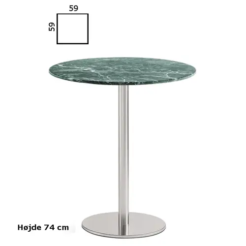 Søjlebord med bordplade i den smukkeste italienske marmor kombineret med eksklusivt stel i messing, kobber, bronze, rust, matkrom eller krom. Inox cafébord fra Pedrali er velegnet til café, restaurant eller hotel eller bare hjemme i stuen. Bordet fås i 2 forskellige højder, 50 cm eller 73 cm. Dette giver også unikke muligheder for at bruge bordet flere steder i indretningen. Endeligt kan det selvfølgelig også kombineres med Pedralis mange smukke stole, hvor du kan matche stelfarver og materiale. Der kan vælges mellem en rund eller kvadratisk bordplade i flere størrelser. OBS! En stentop er monterigsmæssigt lidt særlig, da den fastgøres med silikone. Dette skal du ved montage selv sørge for, eller bare bestille bordene med montering. Så klarer vi det hele. Vejledende leveringstid: 4-5 uger