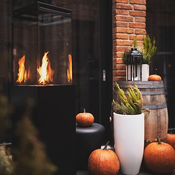 Forlæng de lune forårsdage og sommeraftener i jeres udendørs spiseområder med Lighthouse gas terrassevarmer på hjul. En tidsløs og enkel terrassevarmer med stor brændflade, flotte flammer, og altid på hjul. Lad jeres gæster nyde de flakkende flammer og lunen fra terrassevarmeren, alt imens snakken går over den lækre mad og den kølige vin. Den elegante og moderne terrassevarmer er ideel til udendørs belysning og til at skabe varme og lune. Skab en hyggelig og afslappet stemning nemt og sikkert ved brug af drejehåndtaget og tændingsknappen på siden af terrassevarmeren og lad flammerne danne ramme om en skøn aften. Stilfuld glød I modsætning til mange andre terrassevarmere, kan du med Lighthouse sidde tæt op af terrassevarmeren, uden at få det for varmt. Det gør, at den er langt mere egnet til at skabe hygge og stemning ift. de traditionelle terrassevarmere. Lighthouse brænder på gas, og for langt de fleste vil en gaspejs være det oplagte, og mest praktiske valg. En terrassevarmer på gas er mere sikker, og afgiver mere varme end med bioethanol. Med en Lighthouse gaspejs får du en mild varme, og maksimal hygge på terrassen til dig og dine gæster. Det er dog vigtigt at være opmærksom at glaspladerne kan blive meget varme, og vi anbefaler derfor af sikkerhedsmæssige årsger ikke at have børn eller nysgerrige pilfingre i nærheden en terrassevarmer der har stået tændt længe. Terrassevarmere til hoteller, restauranter, caféer og terrassen Det stilfulde ildsted kan stå udenfor, foran restauranten, caféen, hotellet, eller bare på terrassen derhjemme. Lighthouse er en elegant og moderne terrassevarmer i sort, galvaniseret stål på hjul. Med sit simple og stilfulde ydre er den let at forene med jeres ude - og terrassemøbler. Terrassevarmeren bidrager til den hyggelige stemning hos dine gæster uanset dens placering. Hjulene på Lighthouse gør det muligt at udnytte terrassen til fulde det meste af året, og forlænge jeres gæsters lange, skønne sommeraftener. Det er valgfrit om terrassevarmeren skal med bruges med eller uden hjul, hvis I enten ønsker en mere permanent placering eller har behov for at omrokere hyppigt. Toppen kan tages af selve glaspladen, for et mere enkelt udseende. Ved udendørsbrug anbefaler vi at anvende toppladen, da denne sikrer at ilden ikke går ud i tilfælde af regnfuldt vejr. Produktmål: 156 cm. Bredde: 40 cm. Dybde: 40 cm. Vægt: 27,5 kg. Forbrug ved max tænding er 4,0 kW. Så du kan køre længe på en gasflaske. Cover til terrassevarmeren kan tilkøbes. Beskyt din terrassevarme mod regn og vind, så den kan holde i længere tid. Vejledende leveringstid: 1-3 hverdage