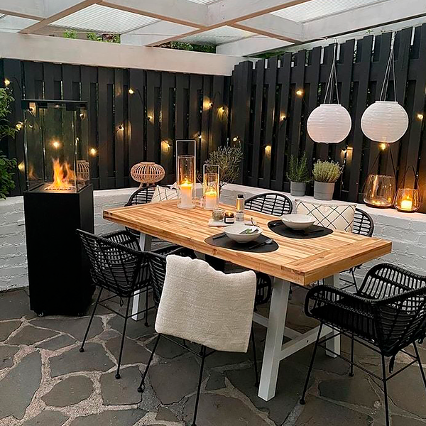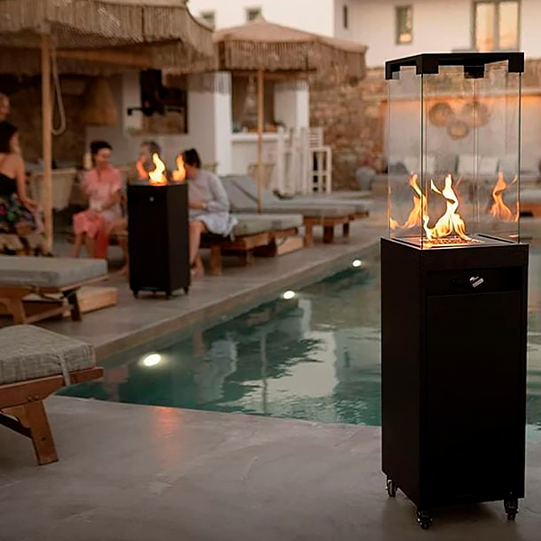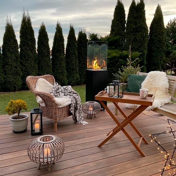 Gylden flamme Skaber hygge på terrassen og i haven Højde inkl. hjul 149,5 cm