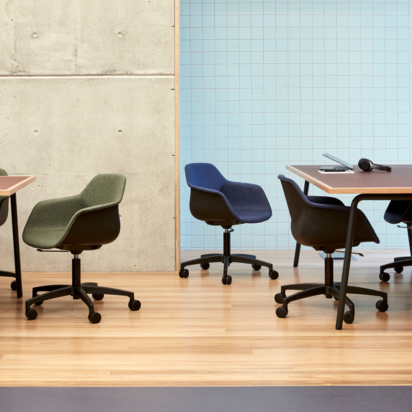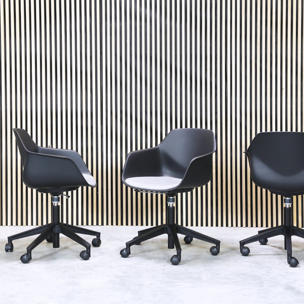 Moderne mødestol på hjul Fleksibel med god siddekomfort Med eller uden polstring