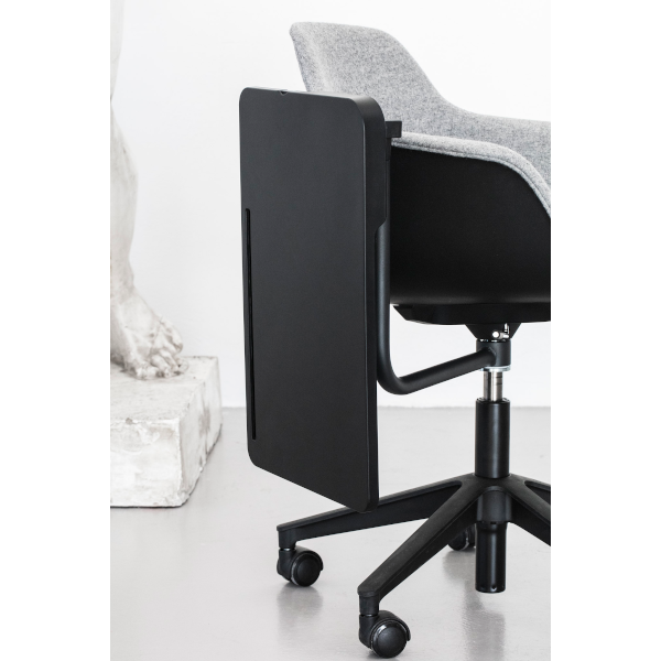 FourMe 66 mødestol på hjul er designet til at bringe en varm og hjemlig følelse til det fleksible mødelokale. Stolen er ideel som moderne møderumsstol eller i undervisningslokalet. Det brede sæde og brede armlæn gør at man sidder fantastisk. Den ultrabløde overflade på skallen, er forstærket med overskydende fibre fra europæisk træproduktion. Træfibrene er synlige, hvilket gør hver stol helt unik. Vælg polster for mere karakter eller efterlad den med den super bløde overflade og naturlig effekt. Der er uendelige muligheder for sæde, indersidepolster og fuldpolstring. Vi tilbyder mange stofvarianter og farver til denne stol, vælg mellem Step Melange, Valencia kunstlæder, Crisp eller Fame. Ønskes der en anden stofvariant eller farve, kontakt os for yderligere information. Fodkrydset på FourMe 66 er som standard sort, men kan vælges i aluminium. Derudover kan der vælges sort Inno® Tab med integreret kopholder til stolen. Inno® Tab måler L52xB32xH2,3 cm. Four Me serien er fra den danske designvirksomhed 4-Design. Med det smukke program af stole og borde til kantine, møderum, kontorlandskaber og receptionsområder kan du lave en et fantastisk smukt indretning med en gennemgående elegant rød tråd. Minimumskøb: 4 stk Design: Strand+Hvass Vejledende leveringstid: 4-5 uger