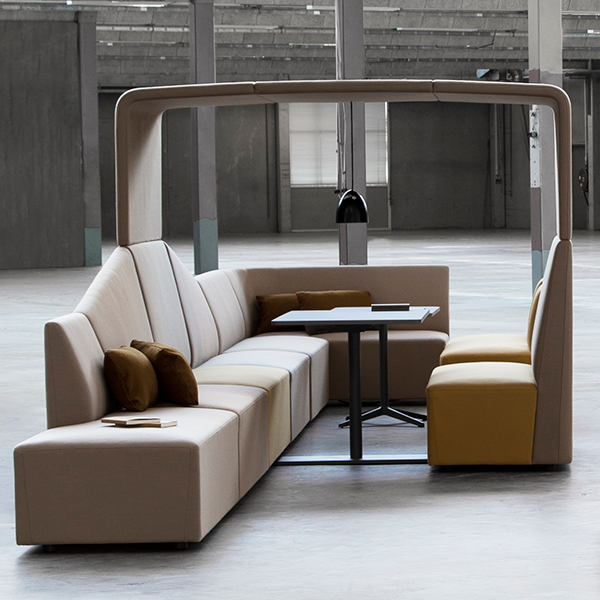 Enkel og fleksibel modulsofa til kontor og - storrumsmiljø Arbejdsbord medfølger Dansk design