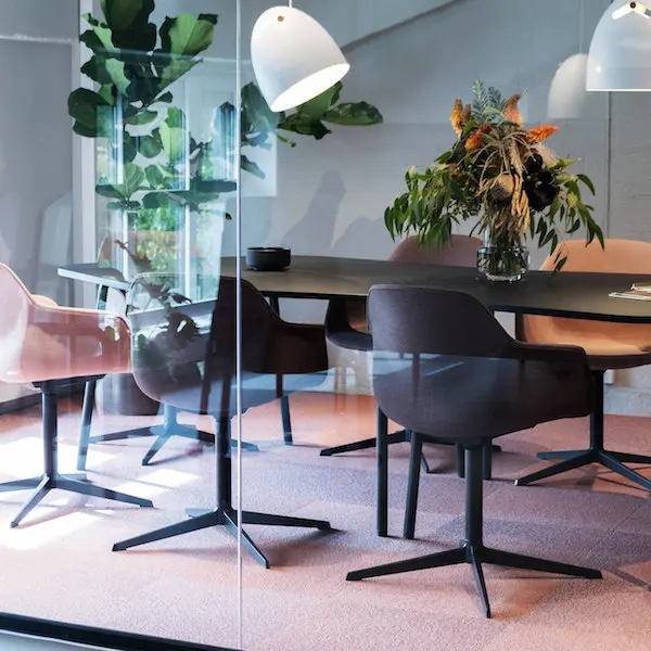 Moderne mødestol i varmt og hjemligt design Flere steltyper og farver Vælg mellem flere typer polstring