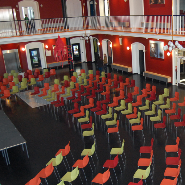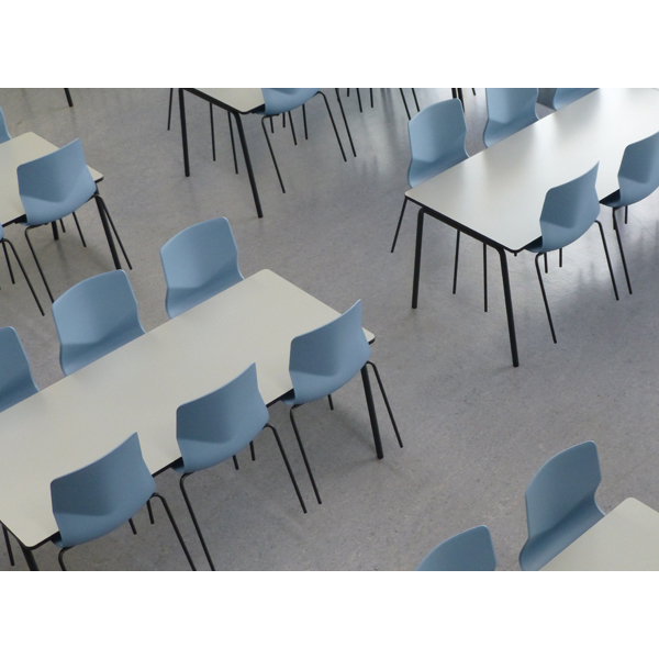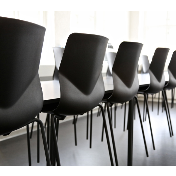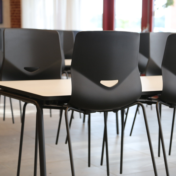 Elegant kantinestol med V-ryg Fås i 11 skalfarver, muliged for gribehul Med eller uden polstring